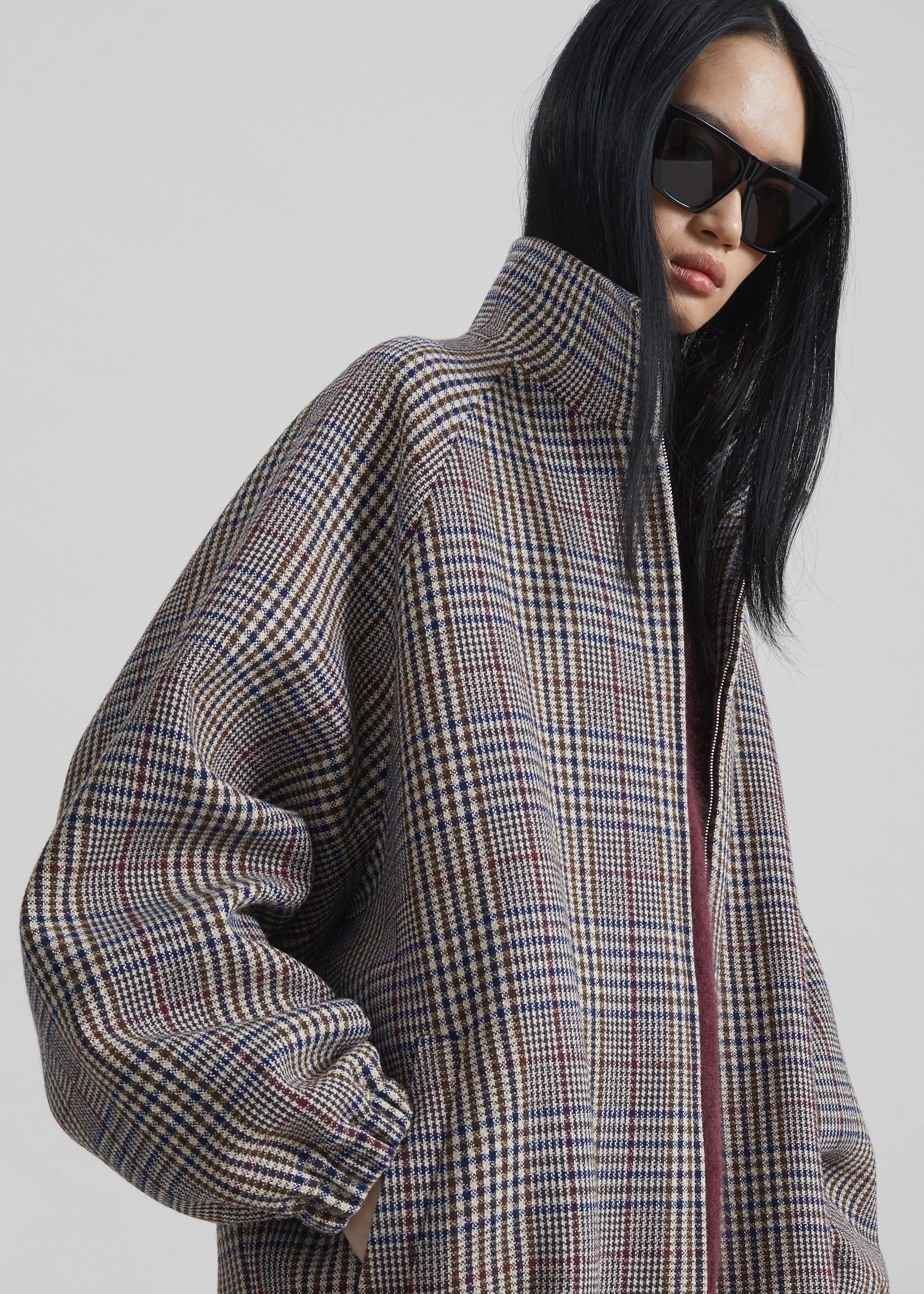 Baxter Wool Track Jacket - Beige Glen Plaid