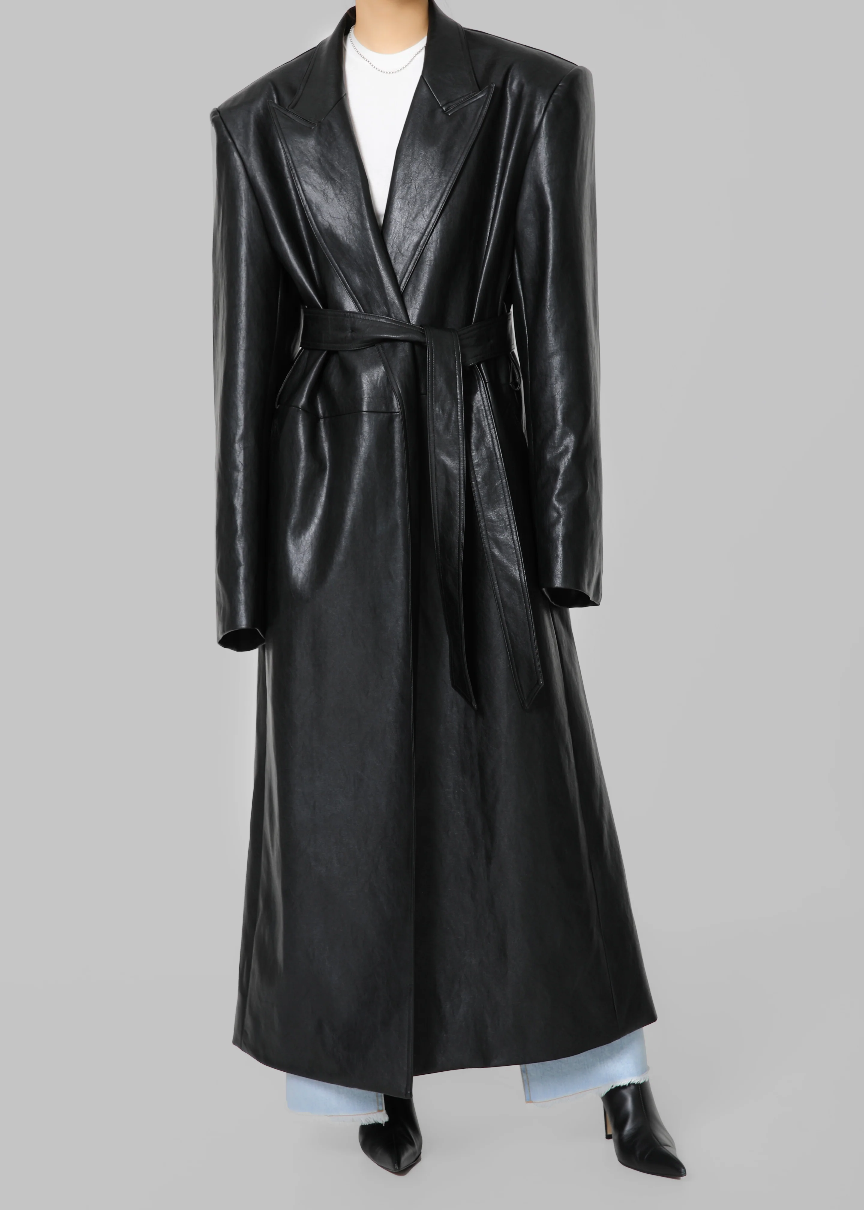 Connie Faux Leather Belted Trench Coat - Black