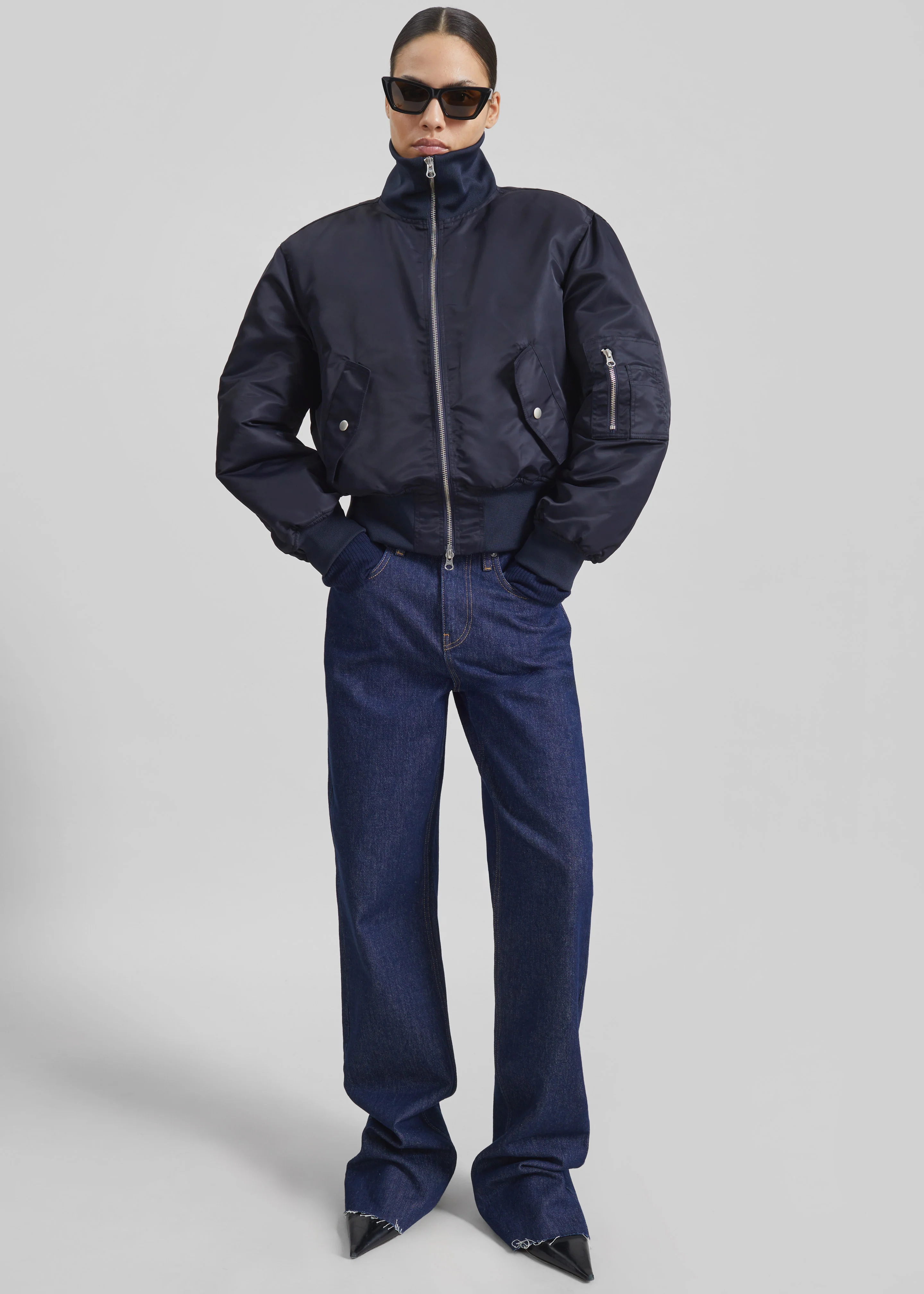 Maloy Cropped Bomber Jacket - Navy