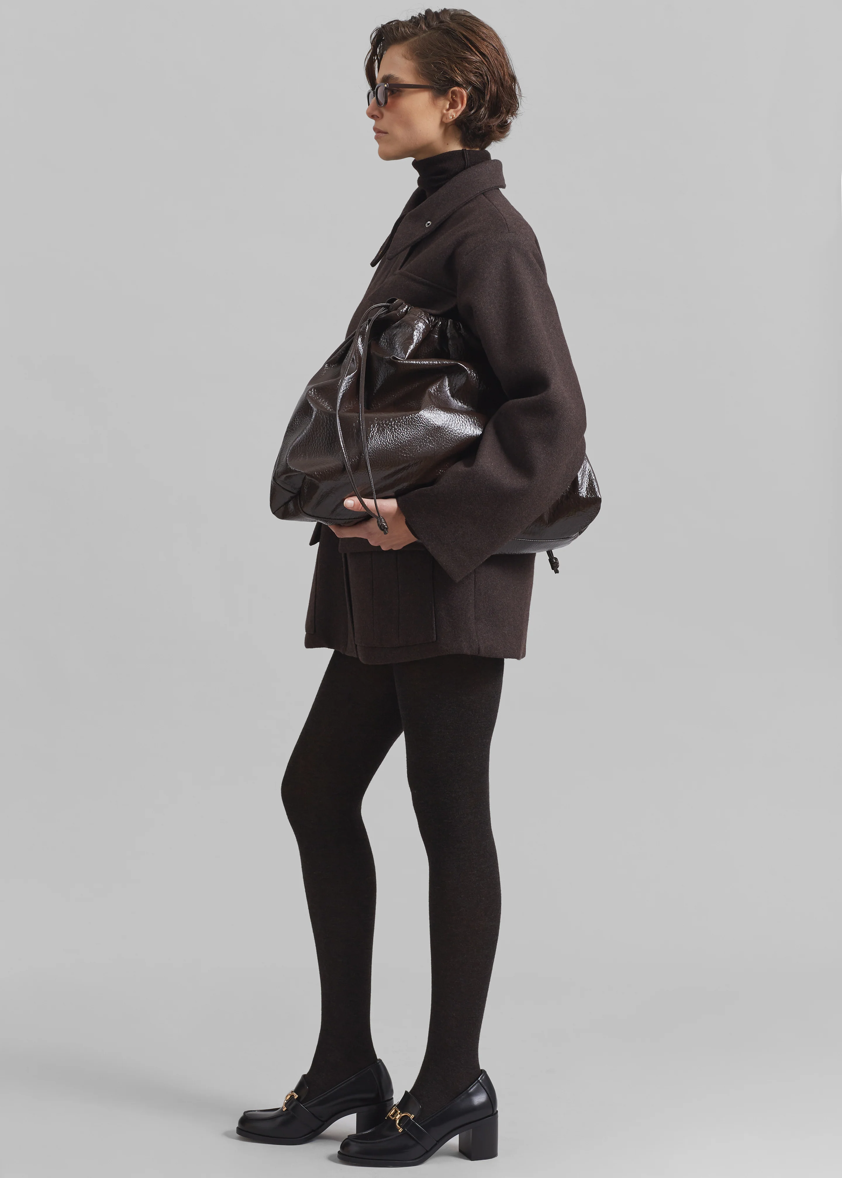 Morgan Crackled Faux Leather Large Pouch - Brown