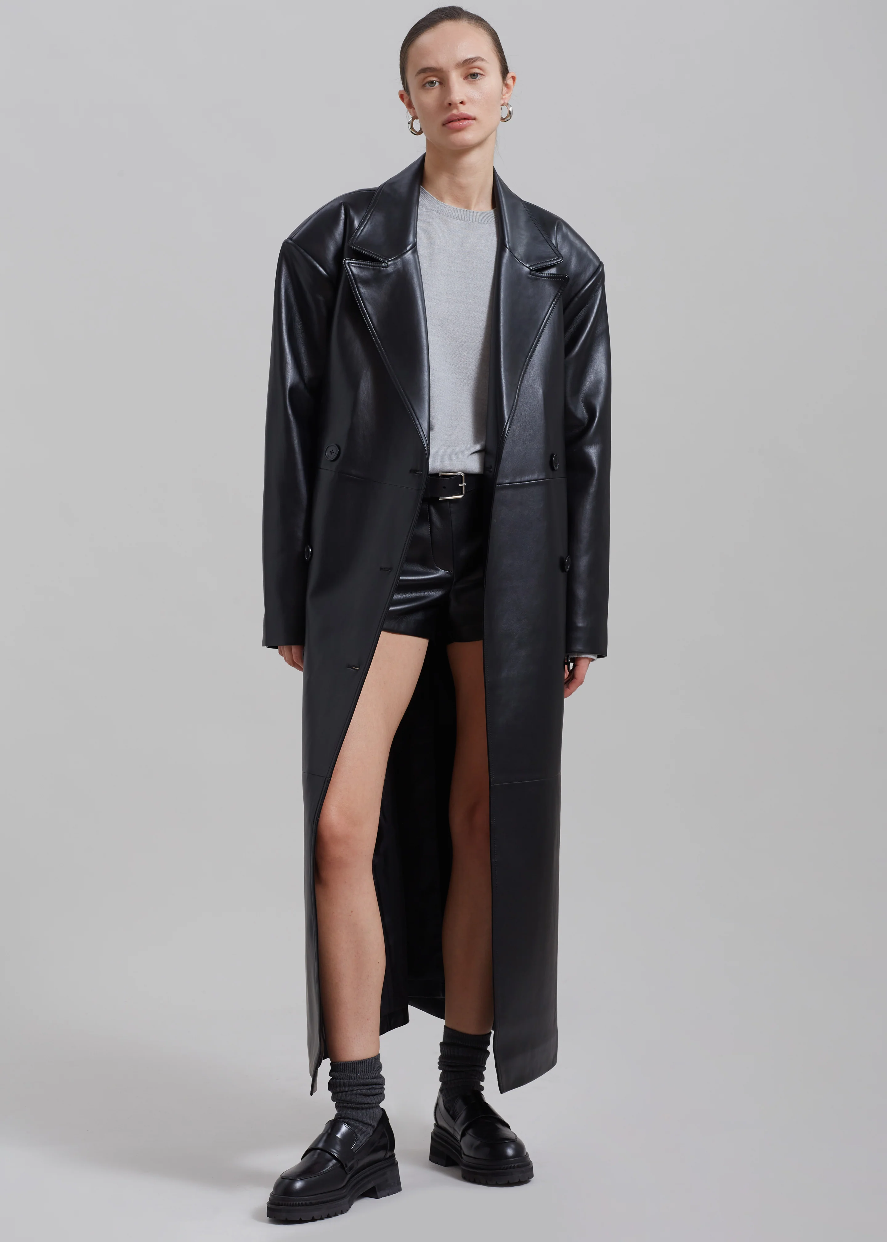 Tina Faux Leather Trench Coat - Black